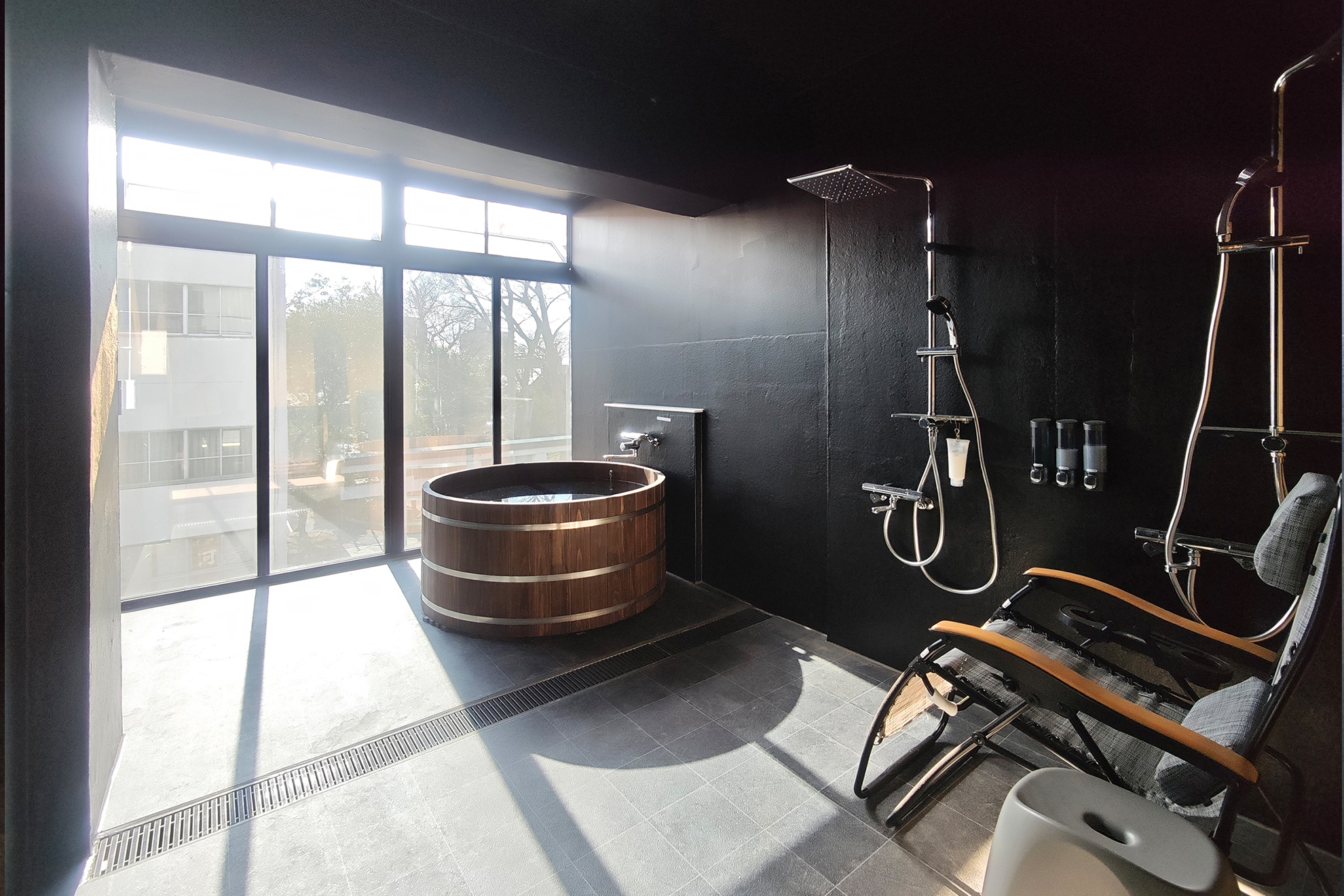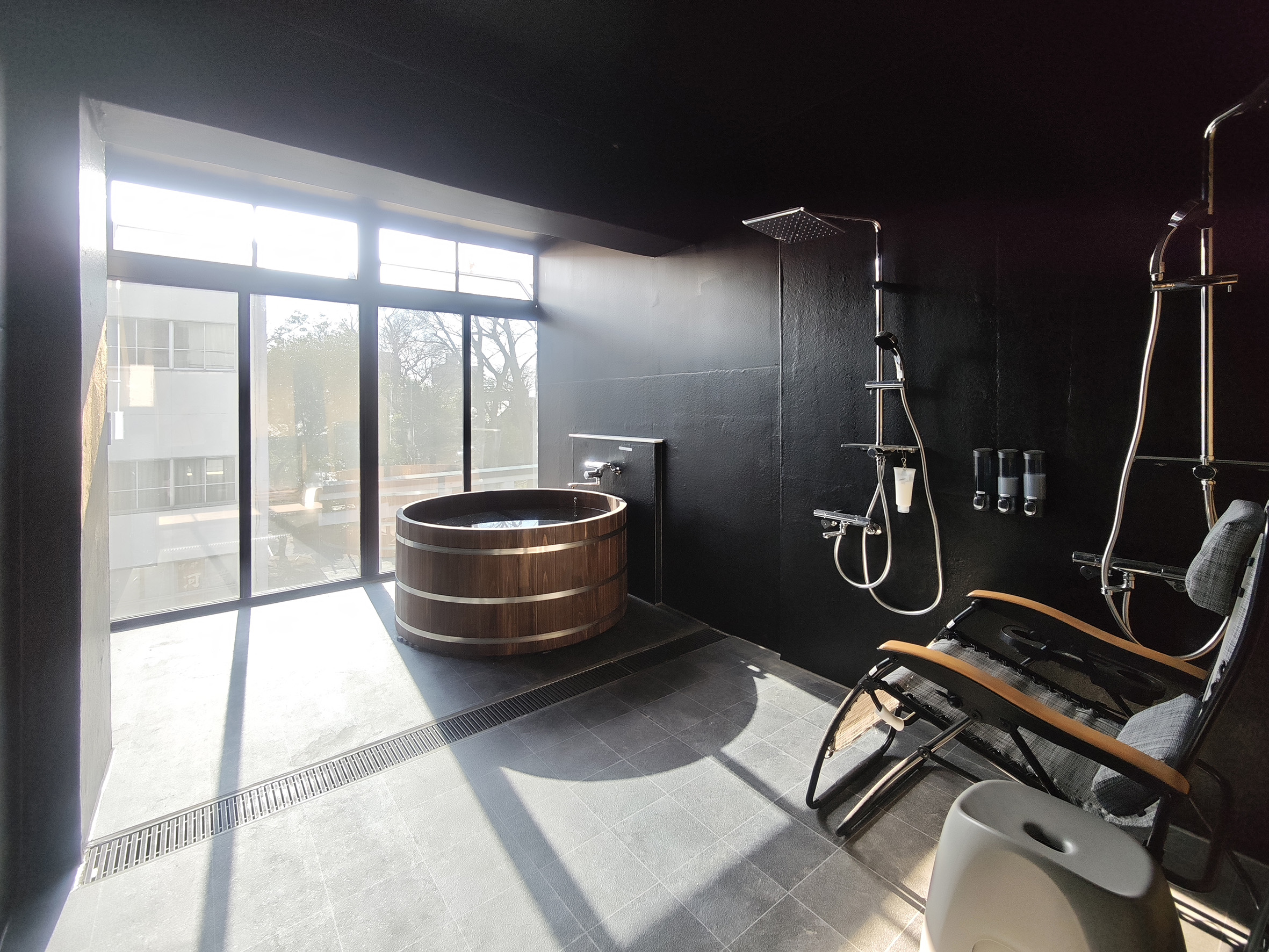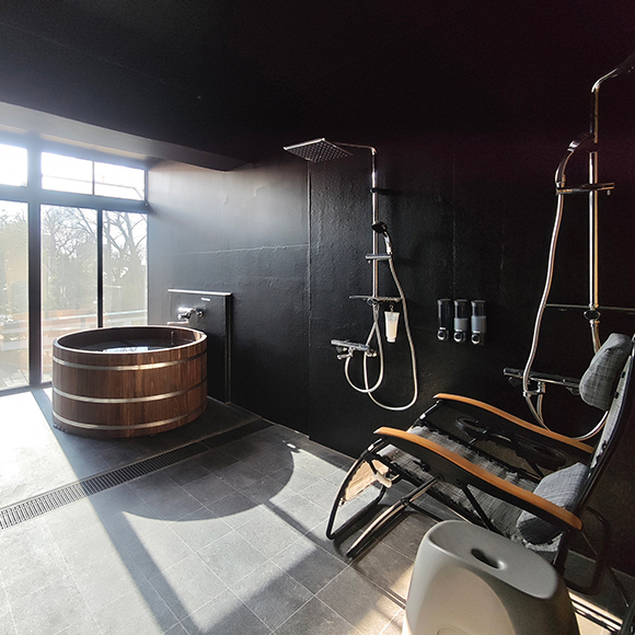 401号室と402号室は檜風呂。403号室と404号室は2台の水風呂を楽しめます。